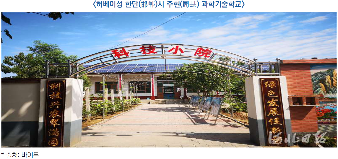 - 국가급 빈곤현에 위치하는 과학기술학원 34개 및 지역적인 특산품을 생산하는 과학기술학교중점 지원