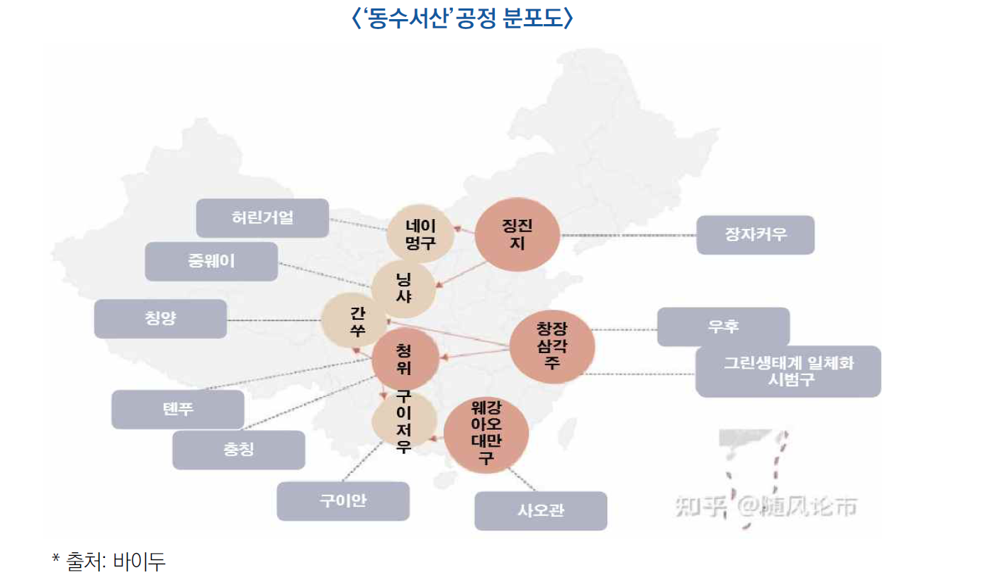 - ′21년 5월, ‘전국 일체화 빅데이터센터 협동혁신시스템 연산거점 실시방안’을 발표하여 동・서부지역의 데이터 수요, 연산역량 및 전력자원 균형을 지향하는 ‘동수서산공정’을 본격 가동