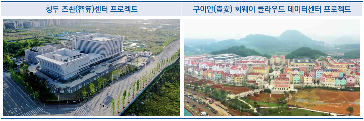 - (알리바바) 최근 청두 클라우드 컴퓨팅센터와 네이멍구 우란차부 데이터센터 프로젝트 가동