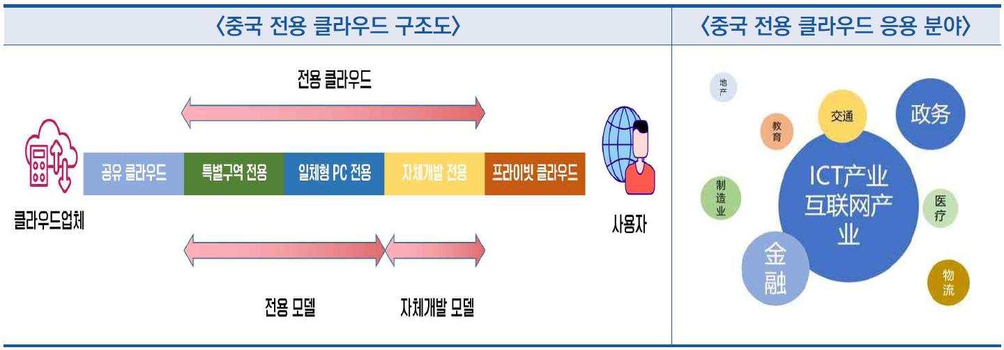 - ‘전용 클라우드’ 서비스는 ICT, 정무서비스, 금융, 교통, 물류, 제조, 의료, 교육, 부동산 등 다양한 분야에 집중