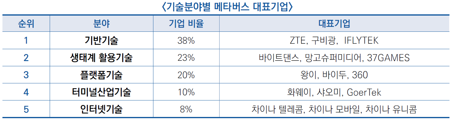 ○ 후룬연구원은 중국 내 메타버스 분야 기업가치 10억 달러(1조 2,829억 원) 이상인 기업을 대상으로 가장 유망한 200대 기업을 최초로 선정