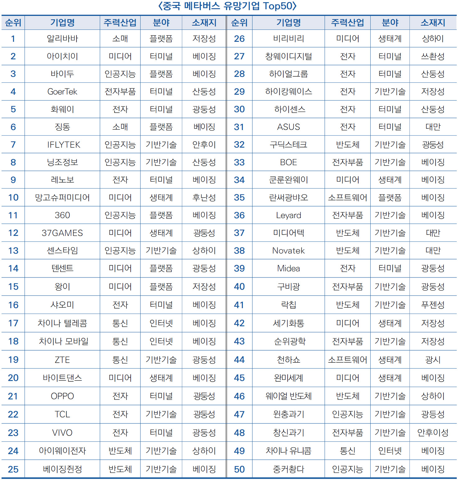 | 중국 메타버스 유망기업 Top200 순위 발표 | ||