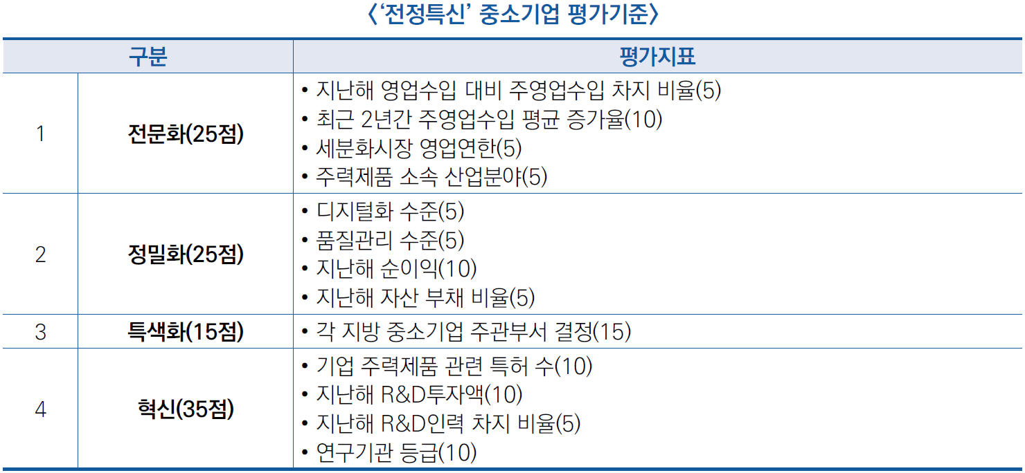![]() ![]() 2) ‘전정특신’ 중소기업