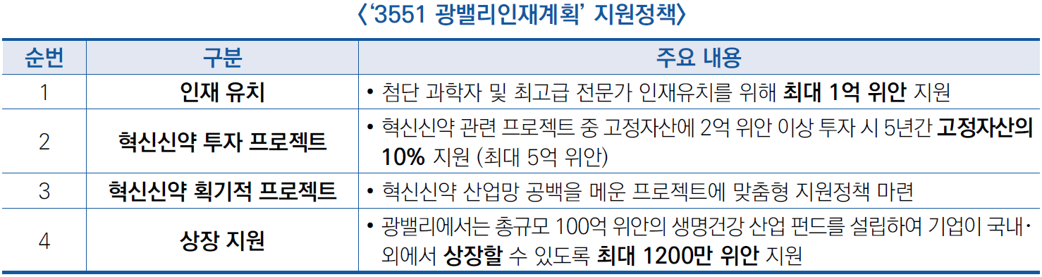 ○ 동후고신구는 '3551 광밸리인재계획(3551光谷人才計劃)'* 등 지원정책을 통해 고급 연구인력·고급인재를 유치에 주력