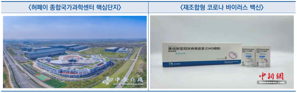 - ′21년 3월 안후이 즈페이룽커마생물제약(安徽智飞龙科马生物制药)과 중국과학원 미생물연구소가 공동 개발한 재조합형 코로나 바이러스 백신 긴급 사용 승인후, 올해 국산 코로나 바이러스 백신으로 출시