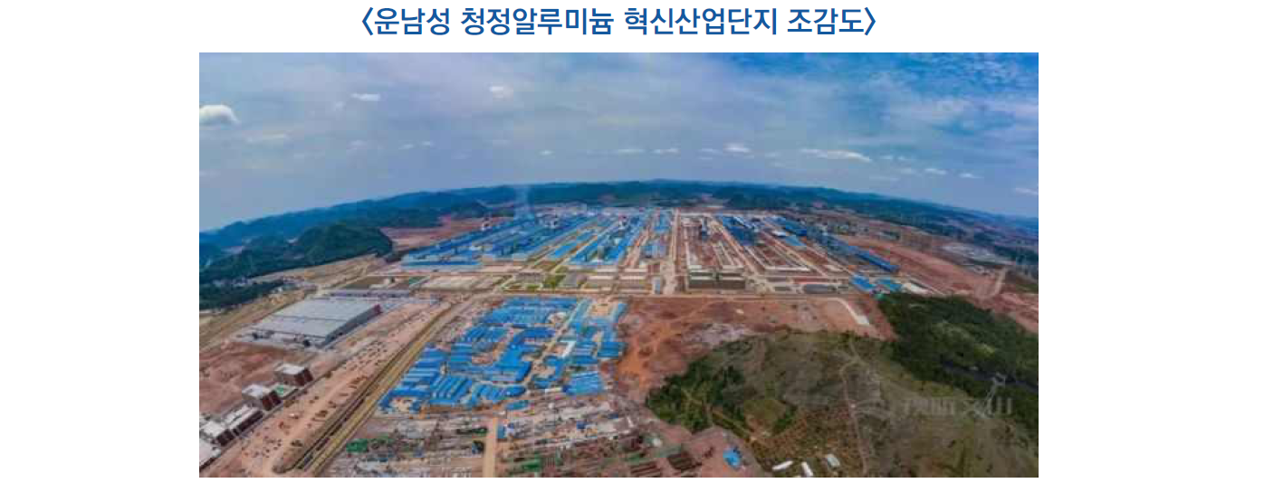○ 운남성은 ′25년까지 청정알루미늄산업 규모 1,500억 위안 달성을 목표로 세계적인 ‘청정알루미늄 밸리 조성’에 주력할 계획