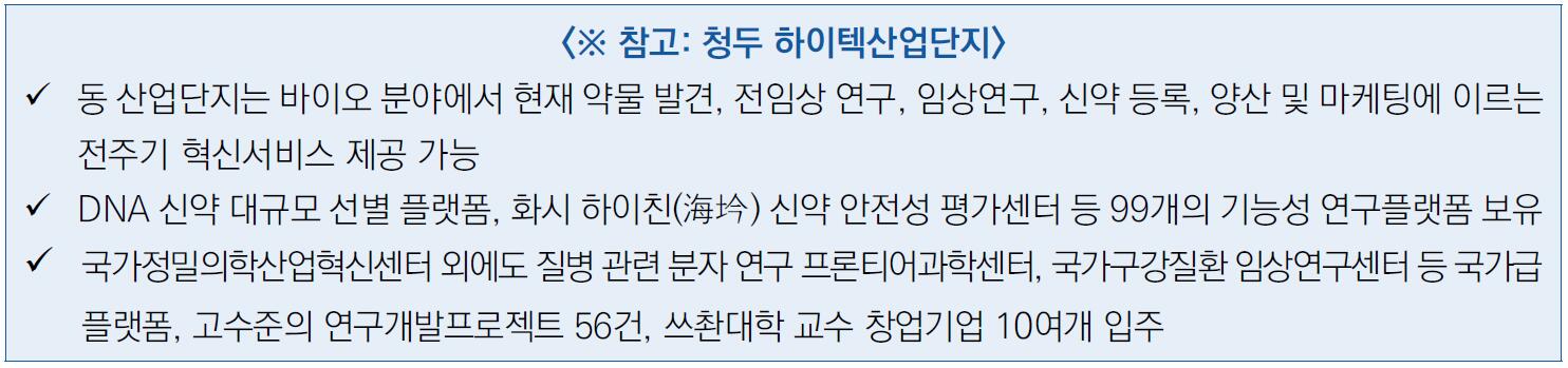 □ 바이오헬스 분야 최초의 국가급 산업혁신센터인 ‘국가 정밀의학 산업혁신센터’가 쓰촨성 청두 하이텍산업단지 내에 개소 (3.25)