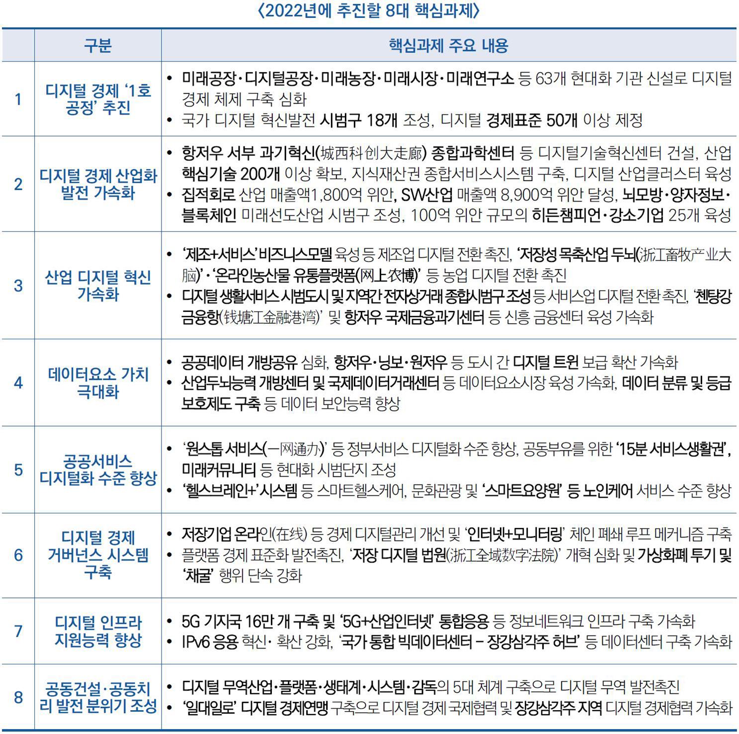| 저장성 디지털 경제발전 고품질 추진 2022년 핵심사업 발표 | ||