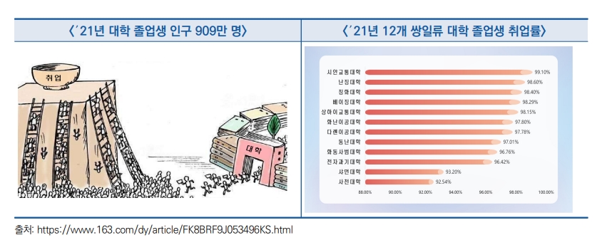 ▣ 칭화대학, 베이징대학을 비롯한 12개 ‘쌍일류(雙一流)’대학 「2021년 졸업생 취업 현황」 발표 (1.14)