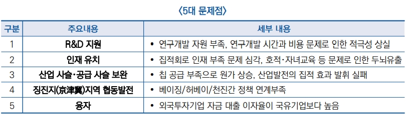 ● 현재 히든 챔피언 기업 관련 R&D 지원, 인재 유치, 산업 사슬・공급 사슬 보완 등 5대 문제점 존재