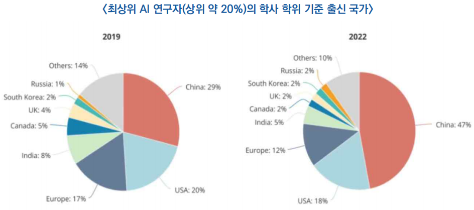 - 반면 미국 학부 출신은 18%에 불과해, AI 기초 교육 부문에서 중국이 글로벌 리더로 부상한 실상을 반영함