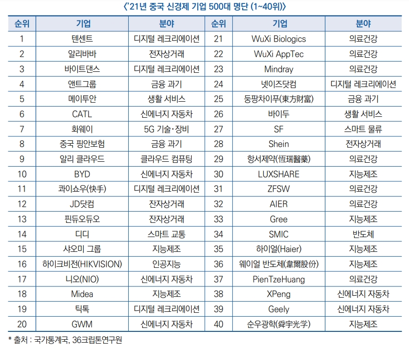 | 2021년 중국 신경제 500대 기업 선정 | ||