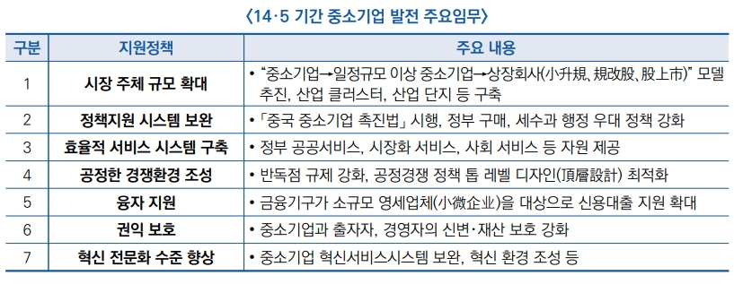 | 中 제14차 5개년 중소기업 발전 촉진계획 발표 | ||