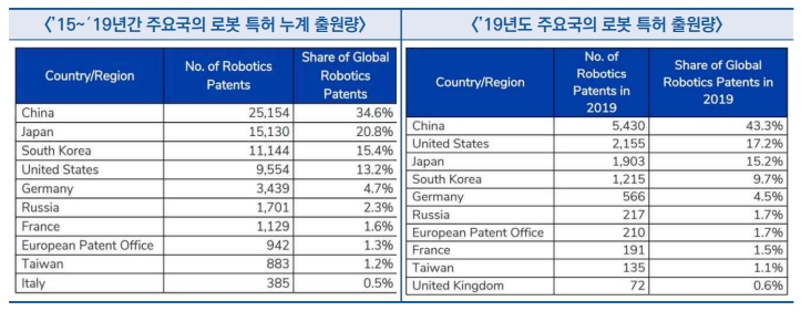 | 미국, 중국 로봇 특허 분야에서 미국을 초월 | ||