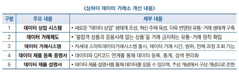 | 중국, 상하이데이터거래소 개선방안 발표 | ||