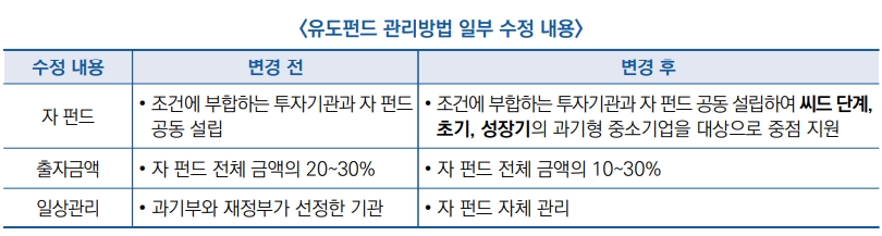 ▣ 최근 재정부와 과기부는 11년 만에 「국가 과학기술 성과이전 유도펀드 관리방법」(개정안)을 발표(11.24)