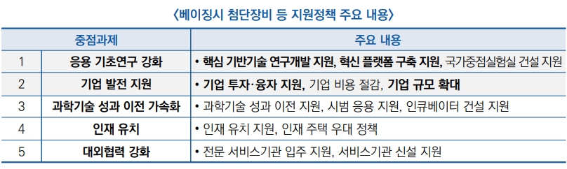▣ 최근 베이징시 정부는 첨단장비 및 센서산업 및 국제과학기술혁신센터와 글로벌 디지털 시범 도시 건설 추진을 위한 「첨단장비 및 센서산업 발전 지원에 관한 조치」를 발표(10.18)