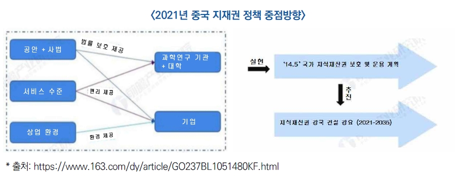 ▣ 중국 국무원은 ‘14・5’ 계획 지재권 혁신 발전 및 지식재산권 강국 건설을 촉진하기 위한 「‘14.5’ 국가 지재권 보호 및 운영 계획」을 발표(11.1)