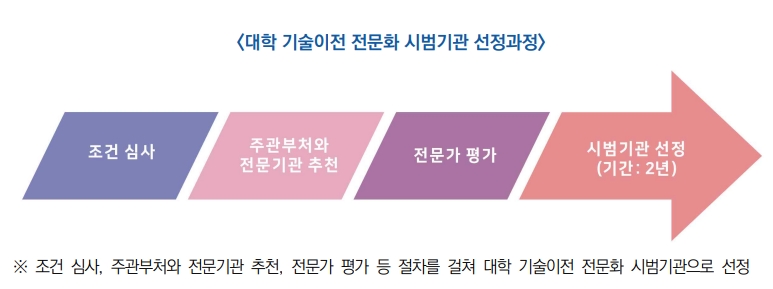 ● 각 대학의 「시범실시방안」에 따라 기술이전 기관을 위한 정책, 인재, 자금 지원 방면에서 기술이전 보장 지원