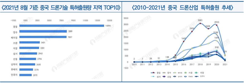 ▣ 광둥성은 중국 내 드론 분야 특허출원량이 가장 많은 지역으로 누계 1.41만 건 기록