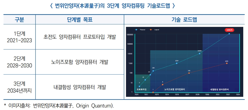 ▣ 중국과기망은 양자컴퓨팅 선도 기업인 번위안양자(本源量子, Origin Quantum)이 발표한 향후 5년간 양자컴퓨팅 기술로드맵을 보도(9.11)