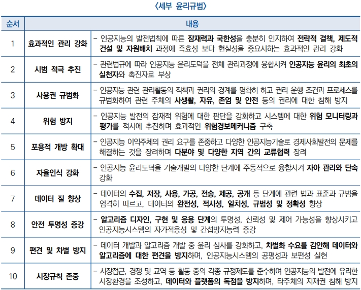 ▣ 국가차세대인공지능관리전문위원회는 인공지능의 전체 생명주기 속에 융합시키기 위한 ‘차세대 인공지능 윤리규범’ 발표(9.25)