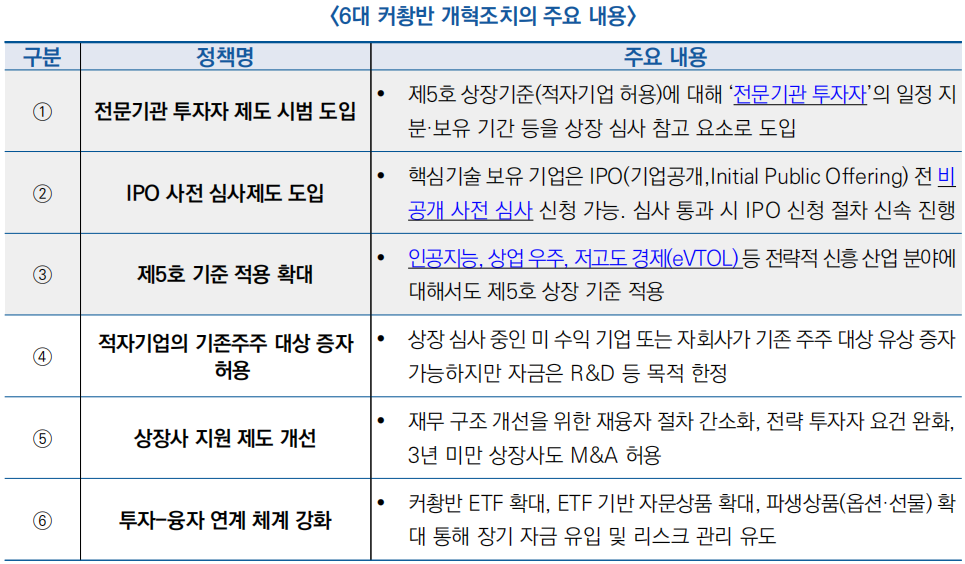 - (제5호 기준 적용 분야 확대) 인공지능, 상업 우주, 저고도 경제(eVTOL) 등과 같이 많은 투자와 개발 기간이 긴 미래 산업 분야에 대해 상장 수요가 늘어남에 따라, 이들 기업에도 제5호 상장 기준 적용을 확대하고 있음