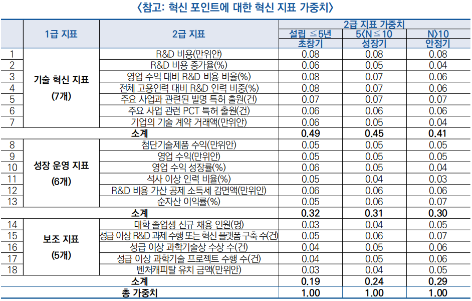 * 혁신 포인트제는 기업의 기술혁신 활동을 점수(포인트)로 평가해, 이 점수를 기준으로 정부 지원이나 금융 혜택 등 각종 인센티브를 차등적으로 제공