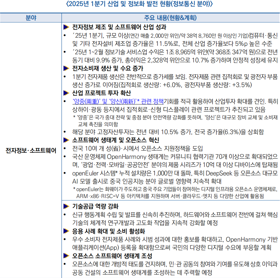 □ 국무원 신문판공실은 공업신식화부(공신부) 관계자를 초청해 ‘2025년 1분기 산업 및 정보화 발전 현황’을 주제로 기자회견을 개최(25.4.18)