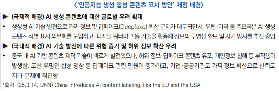 | 中 AI 기술 발전과 규제 병행, 생성형 콘텐츠 식별 의무화 추진 | ||