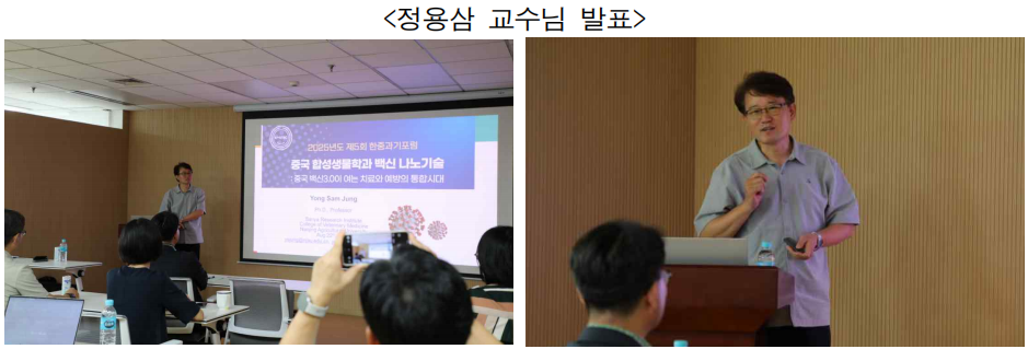 ○ 2025년 8월 22일(금) 오후, 한중과학기술협력센터(KOSTEC)가 주최한 ‘2025년도 제5회 한중과기포럼’이 북경 KOSTEC 회의실에서 개최되었다. 이번 포럼에서는 중국 난징농업대학교 정용삼 교수가 초청되어, ‘중국 백신3.0이 여는 치료와 예방의 통합시대’를 주제로 발표를 진행했다. 행사에는 주중한국대사관, 북경 주재 기업, 언론 및 정부 관계자 등 약 30명이 참석하였다.