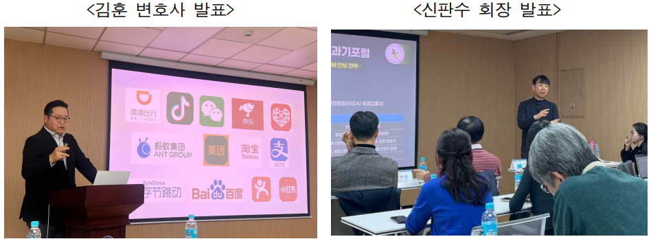 ○ 질의응답에서는 중국 데이터 규제의 실제 집행 강도, 위반 시 처벌 사례 공개 범위, 행정처분에 대한 법적 대응 가능성 등이 주요 쟁점으로 논의되었다. 아울러 암호법 적용 확대, 보안등급 인증 비용 부담, 지정 장비 도입 의무 등 기업 실무에 미치는 영향에 대한 질문이 제기되었다.