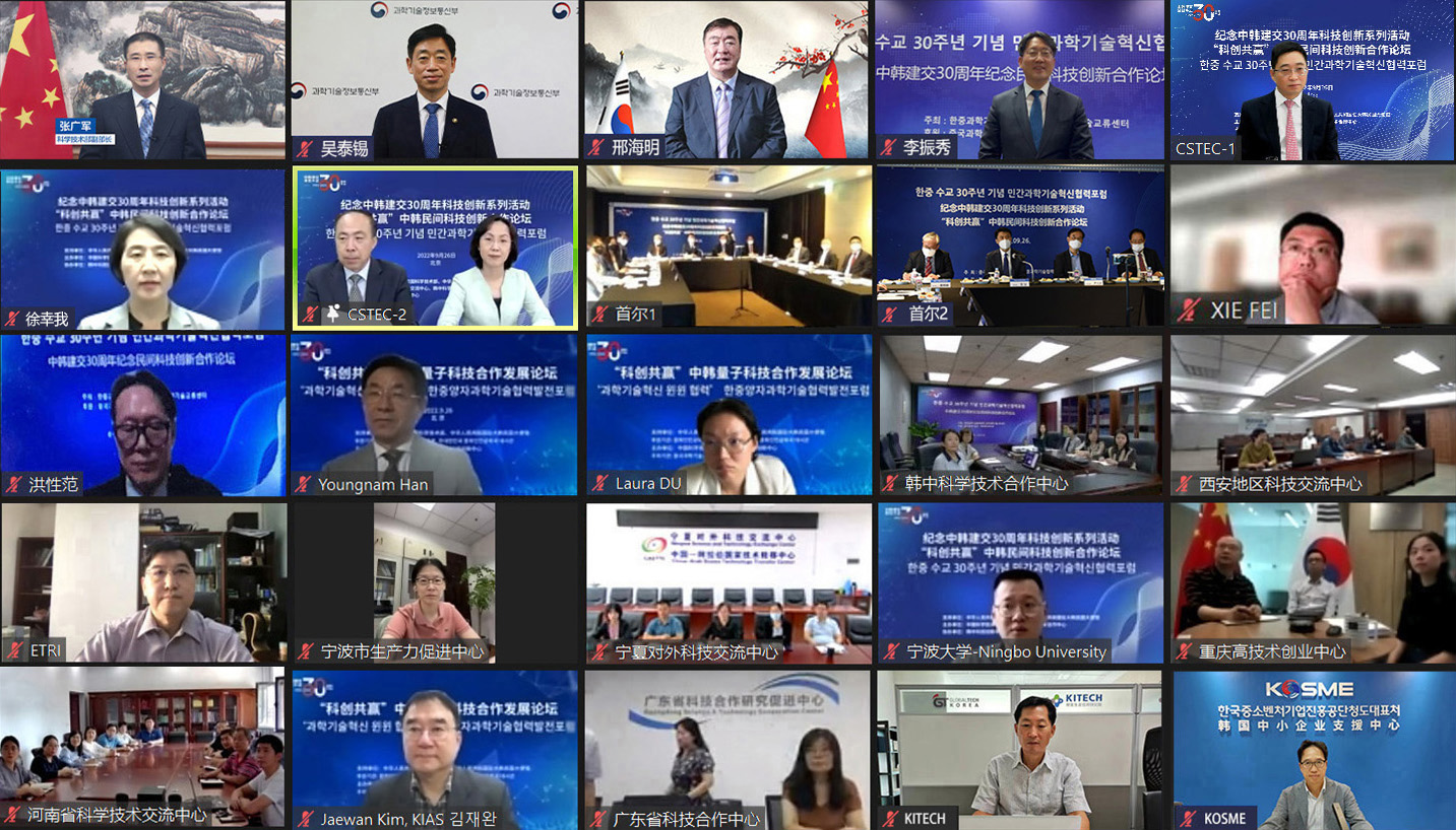 한중과학기술협력센터는 중국과학기술교류센터와 공동으로 9월 26일 오전 서울과 북경을 온라인으로 연결해 ‘한중수교 30주년 기념 민간과학기술혁신협력포럼’을 개최하였다.