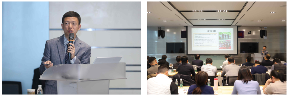 우선 한중과학기술협력센터(KOSTEC) 김준연 센터장이 트럼프 2.0의 특징과 중국 과학기술 분야의 이슈에 대해서 발표하였다. 김 센터장은 "트럼프 2기 중국 과학기술은 양질전환과 산업 전환이라는 두 가지 난제에 직면해 있음을 강조했다. 특허나 논문 등 양적 지표도 좋지만, 실제 기업의 글로벌 매출이나 시장점유율과 같은 질적 성과 지표로 전환되어야하며, 가전이나 부품 등 후발국이 주력하는 산업에서 선진국이 포진되어 있는 바이오, 플랫폼, 제약, 반도체와 같은 장주기, 또는 고부가가치 산업으로 전환하는 이슈에 트럼프 2.0 행정부의 등장은 커다란 도전이라고 전망했다.