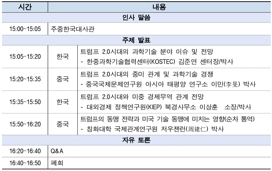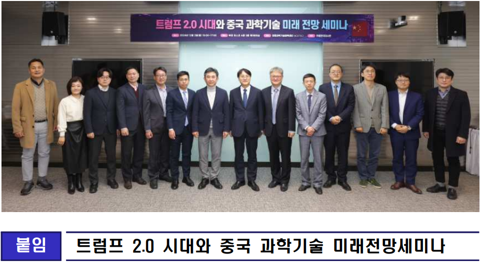 | ‘트럼프 2.0 시대와 중국의 과학기술 미래전망 세미나’ 개최 | ||