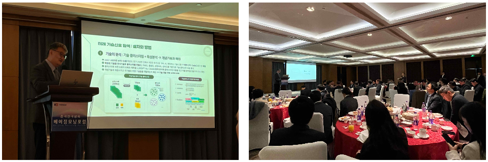 ![]() 발표를 마친 후, 참석자들은 AI 기반 기술 예측이 기업 투자 및 전략 수립에 미치는 영향과 연구개발(R&D) 방향성과의 연계 가능성을 중심으로 활발한 논의를 이어갔다. 특히, 시그널 탐지를 활용한 미래 기술 전망이 실제 산업과 시장 전략에 어떻게 적용될 수 있는지에 대해 깊이 있는 토론이 진행되었다.