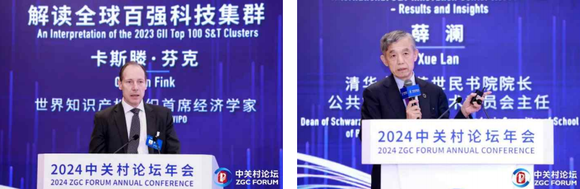 ![]() 기조연설에는 세계 과학기술 클러스터 연구에 앞장서는 전문가들도 적극적으로 참여하였다. WIPO 수석경제학자 카스텐·핑크(卡斯滕·芬克)는 ‘글로벌 100대 과학기술 클러스터’ 발전현황을 설명하였고, 칭화대학 쑤시민서원(苏世民书院) 쉬에란(薛澜) 원장은 국제과학기술혁신평가시스템을 소개하고 글로벌과학기술혁신센터의 구축방안을 공유하였다.