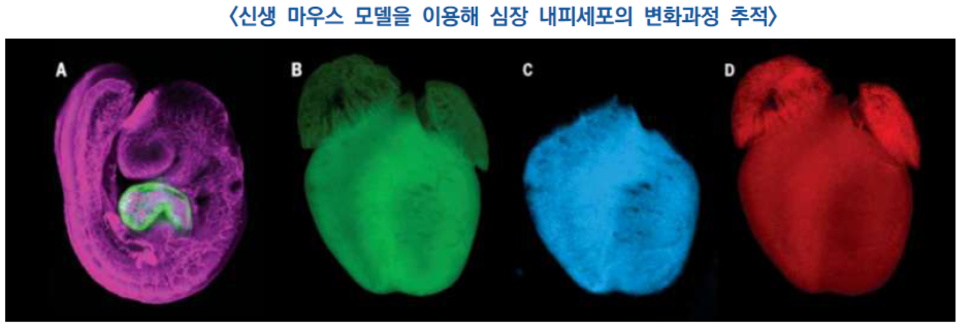 - 신규 개발한 인근세포 유전학기술을 이용해 심장 내피세포가 조기 배아 발육 과정에 간장으로 이동하여 간두상내피세포(LSECs)로 변화했음을 확인하였는데, 이는 세포 간의 상호작용과 처한 환경이 세포의 운명과 기능 전환에 중요한 역할을 담당함을 입증