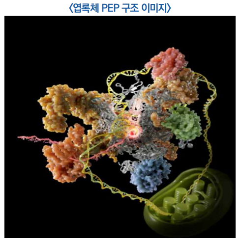 ○ 중국과학원 분자식물연구센터의 장위(张余) 연구진은 형질전환 기술을 사용해 엽록체 DNA의 ‘전사 기계’인 PEP(phosphoenol pyruvate)의 정밀한 구조를 규명