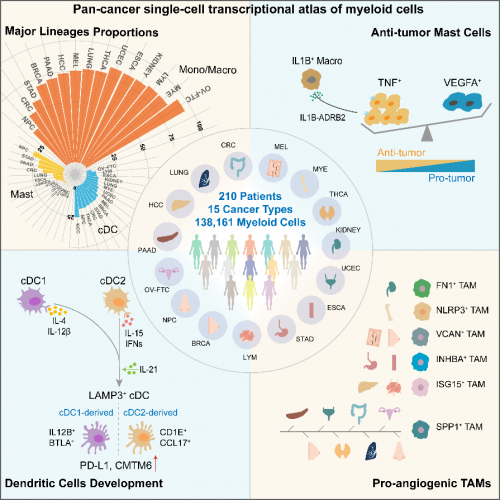 ![]() ![]() 베이징대학교 종양병원 Ji Jiafu(季加孚) 연구팀과 베이징대학교 생물의학프론티어혁신센터 Zhang Zemin(張澤民) 연구팀은 공동으로 단일세포 수준에서 위암, 대장암, 간암, 폐암, 유방암 등 15종 암의 종양침윤 골수세포 특성을 체계적으로 형상화하였다. 해당 연구 성과는 국제학술지 “Cell”에 게재되었다. 연구팀은 비만세포, 수지상세포 및 종양 관련 대식세포 등 골수세포군의 다양한 암종에서의 특성을 비교하여 다양한 암종의 골수세포를 표적으로 하는 면역요법에 중요한 기반을 마련했다. 종양은 복잡한 생태계를 가지고 있으며 암세포는 다양한 기타 유형의 세포와 상호작용하여 복잡한 세포 조절 네트워크를 형성한다. 그 중, 골수세포는 종양의 염증 반응 및 혈관 생성 조절 등 방면에서 중요한 역할을 하여 림프구에 이어 암 임상연구의 또 하나의 표적 세포가 되었다. 중국은 위암 발병률이 높은 나라이다. 연구에 따르면, 암에 인접한 정상 조직에 비해 위암 종양조직 중의 비만세포의 비율이 더 높다. 이는 종양조직 중의 비만세포의 축적이 위암의 발생과 진행에 중요한 역할을 함을 의미한다. 위암 종양조직에는 혈관 생성 촉진과 관련된 신호 경로를 상향 조절하는 대식세포군이 있으며 이는 대식세포군이 위암 종양 미세환경에서 중요한 역할을 한다는 것을 나타낸다. 연구팀은 자체 생성한 단세포 전사체 시퀀싱 데이터와 기존의 공용 데이터를 통합하여 위암을 포함한 15종 암종의 골수세포 지도를 구축하고 여러 골수세포군의 다양한 암종에서의 구성, 발달 및 기능의 같은 점과 다른 점을 체계적으로 비교하였다. 연구 결과, 비만세포는 다양한 암에서 다양한 기능 상태를 나타내며, 다양한 유형의 암에는 모두 혈관 신생 촉진과 관련된 신호 경로를 상향 조절하는 대식세포군이 있다. 대식세포는 서로 다른 암종에서 높은 이질성을 나타낸다. 따라서, 대식세포를 표적으로 하는 면역치료에서 다양한 암종에서의 전사 특이성을 고려해야 한다. 정보출처 : http://news.sciencenet.cn/htmlnews/2021/2/452929.shtm |