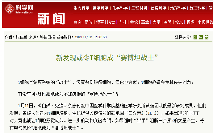 | 중국의학과학원, 인터류킨2 말기 종양T세포 고갈초래 발견 | ||