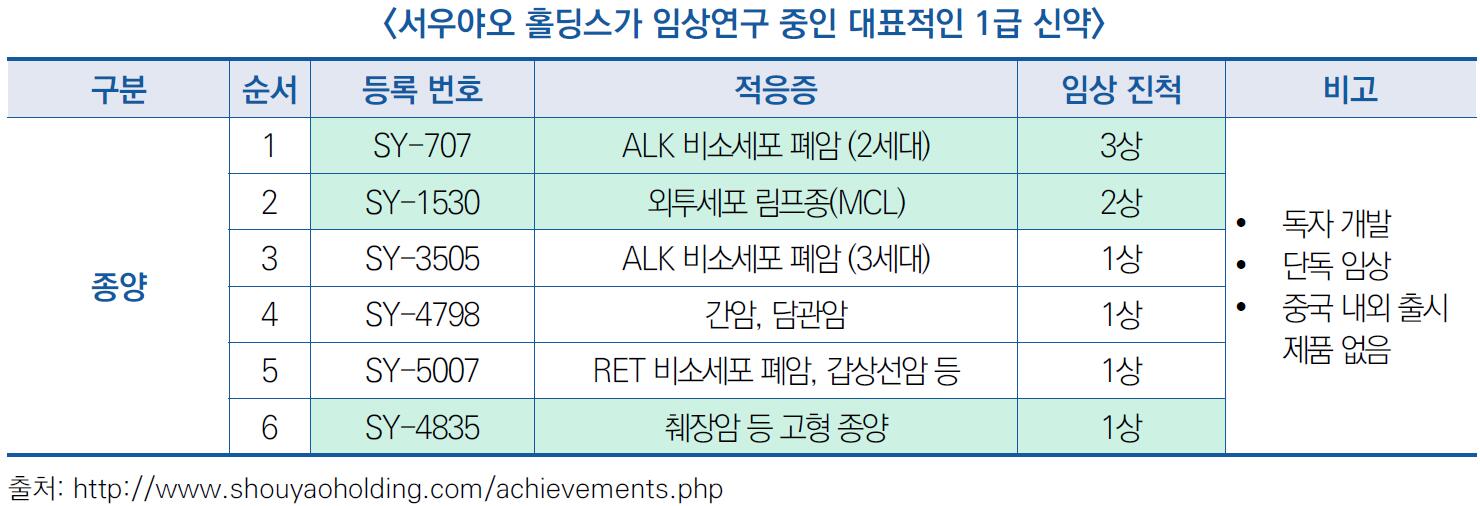 □ 서우야오 홀딩스(′16)는 소분자 바이오신약 개발업체로서 최근 상하이증권거래소에 상장 성공(3.23)