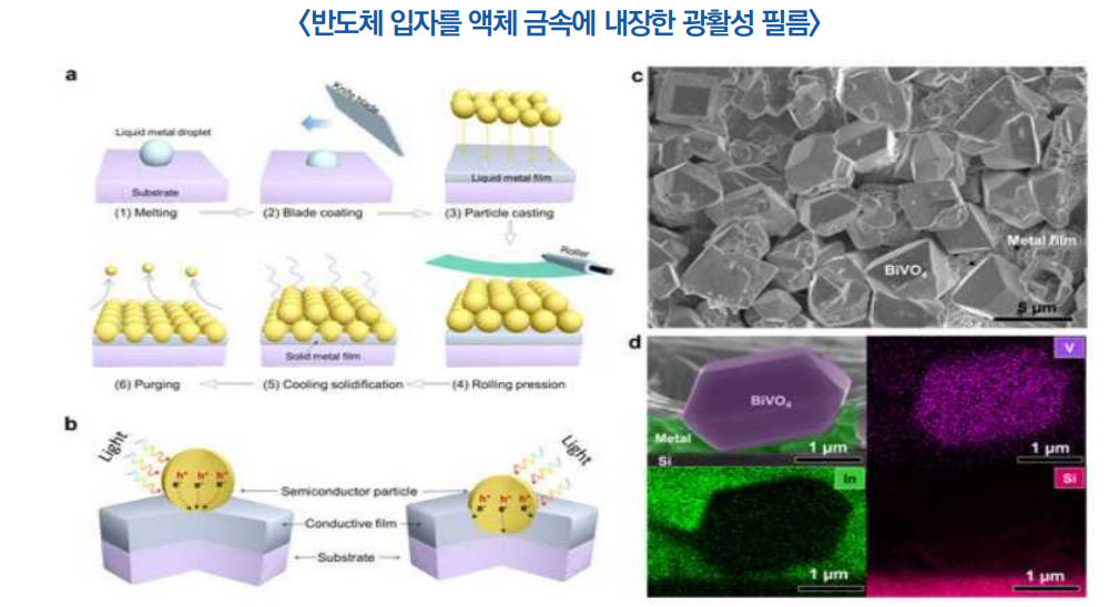 - 저온 액체 금속을 전도성 집전체 및 바인더로 사용하여 기판 위에 대규모 필름을 만든 다음 압연 기술을 사용해 반도체 입자를 내장함으로써 우수한 광발생 전하 수집력을 형성