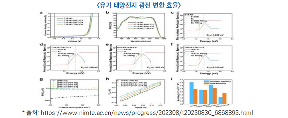 - 연구팀은 다양한 매개변수를 테스트한 결과 올리고머 수용체를 통합하면 유기 태양전지의 비 방사 에너지 손실을 감소시켜 전지의 개방 전압을 증가시킨다는 점을 발견