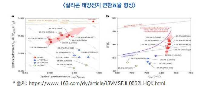 - 이종접합 전지의 광전 변환 효율(26.81%)과 이론 한계 효율(29.2%)을 향상시켜 이종접합 태양전지 양산 능력 확보