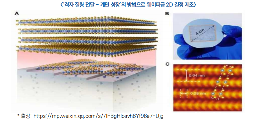 - 이 기술에 기반해 황화 몰리브덴, 셀렌화 몰리브덴 및 황화 텅스텐 등 7종의 고품질 2D 결정을 제조하였으며, 결정의 단일 두께는 0.7nm에 불과해 기존 실리콘 소재(5~10nm) 보다 훨씬 얇음