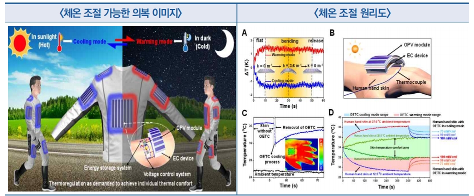- 향후 부품 성능을 개선해 극지와 우주와 같은 극한의 환경에 적합한 태양광 의복시스템을 개발할 예정이며, 관련 논문은 최근 Science 지에 게재