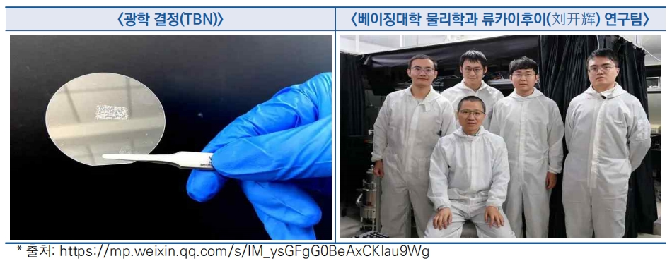 - 중국의 광학결정 이론의 혁신적인 성과로 초박막 질화붕소 결정을 제조하는 새로운 영역을 개척하고 향후 양자 광원, 광자 칩, 인공지능 분야에서 응용될 전망
