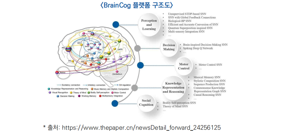○ 중국과학원 자동화연구소 쩡이(曾毅) 연구팀은 전체 펄스 신경망의 뇌 모방 인공지능 및 뇌 시뮬레이션의 오픈소스 컴퓨팅 플랫폼 ‘BrainCog(智脈)’ 개발에 성공