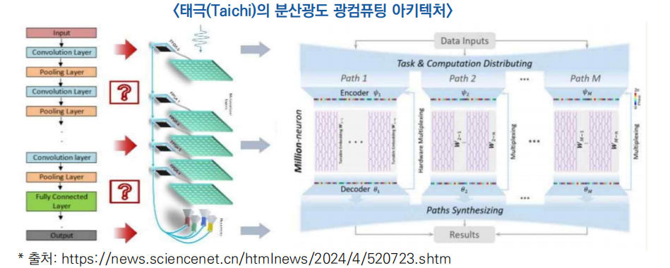 ○ 칭화대학 전자공정학과 팡루(方璐) 연구팀은 분산광도 광컴퓨팅 아키텍처를 처음 만들고 세계 최초로 대규모 간섭-화질 이성질체 집적칩 태극(Taichi)을 개발